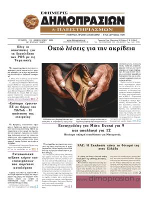 ΕΦΗΜΕΡΙΣ ΔΗΜΟΠΡΑΣΙΩΝ ΚΑΙ ΠΛΕΙΣΤΗΡΙΑΣΜΩΝ