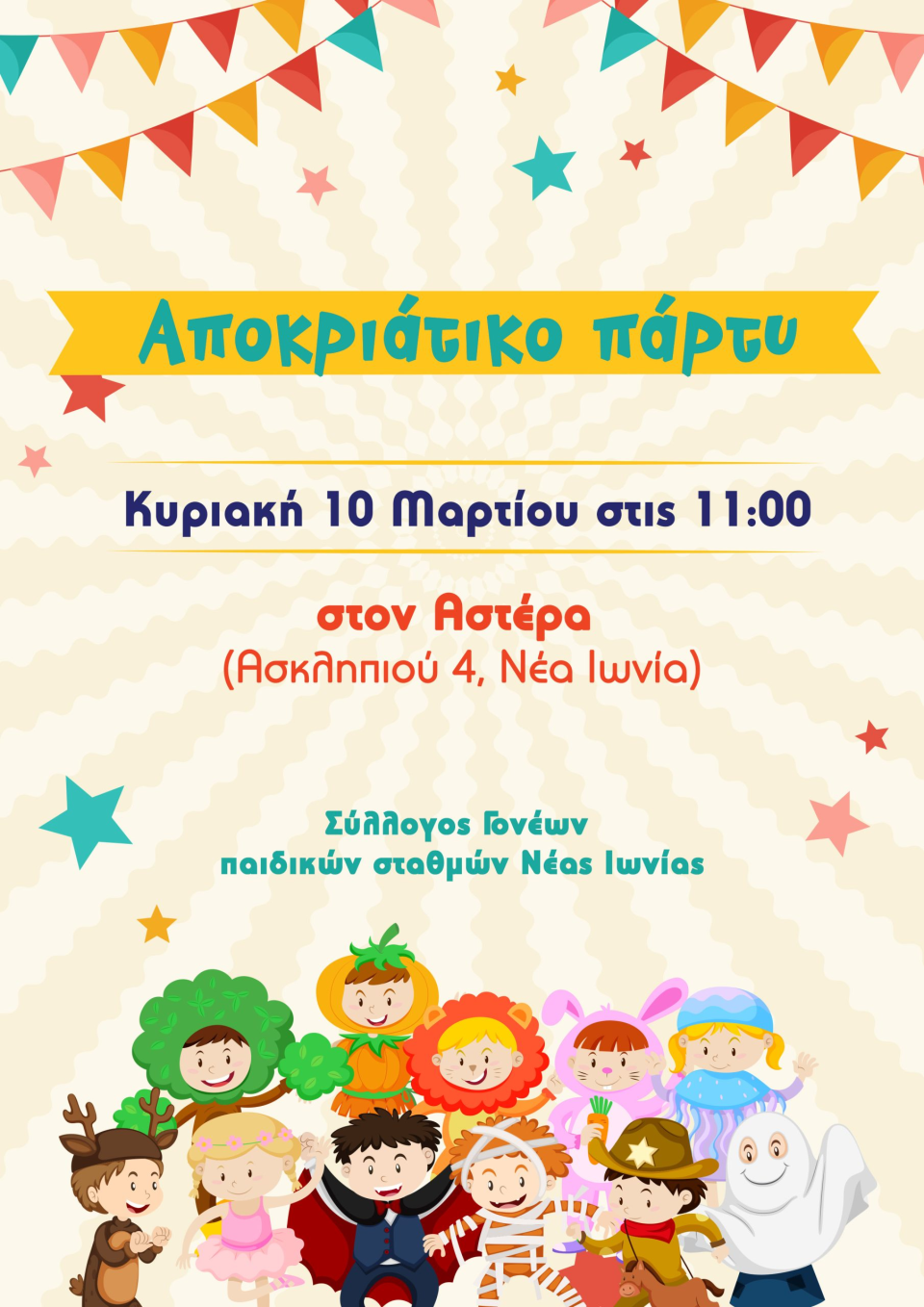 Το ΔΣ του Συλλόγου καλεί όλους και όλες με τα παιδάκια τους την Κυριακή 10/3, στον Δημοτικό Κινηματογράφο Αστέρα (Ασκληπιού 4, Νέα Ιωνία), στις 11:00 π.μ. για πολύ χορό, τραγούδι και παιχνίδια.