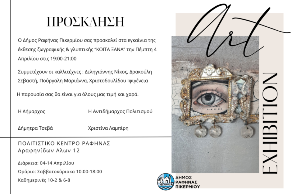 Την Πέμπτη 4 Απριλίου στις 7μμ στο Πνευματικό Κέντρο του Δήμου Ραφήνας-Πικερμίου.