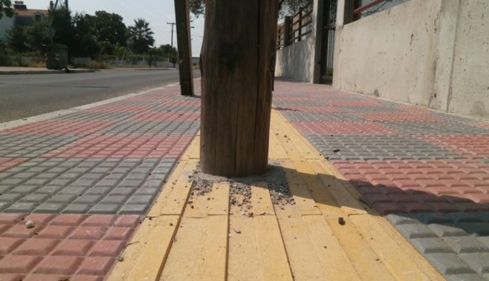 Σε δρόμο της Χαλκίδας (Δημοσθένους Βασιλείου) παραδόθηκε πεζοδρόμιο όπου στην ειδική διάβαση τυφλών “ξεφυτρώνει” μια κολώνα σήμανσης!