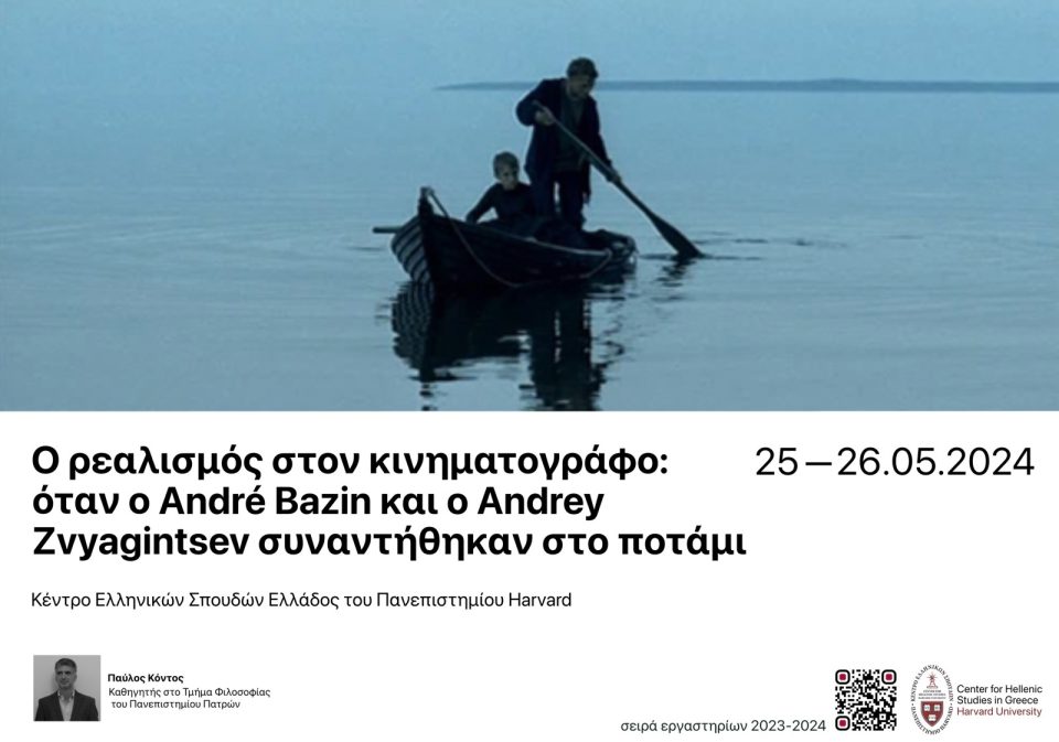 Το Κέντρο Ελληνικών Σπουδών Ελλάδος (ΚΕΣ), στο πλαίσιο της ετήσιας σειράς εργαστηρίων του, που στοχεύει στην υποστήριξη του ευρύτερου πεδίου των Ανθρωπιστικών Επιστημών και στην προσφορά διαγενεακών, διεπιστημονικών ευκαιριών δια βίου μάθησης για το ευρύ κοινό, διοργανώνει το εργαστήριο με θέμα: «Ο ρεαλισμός στον κινηματογράφο: όταν ο André Bazin και ο Andrey Zvyagintsev συναντήθηκαν στο ποτάμι».