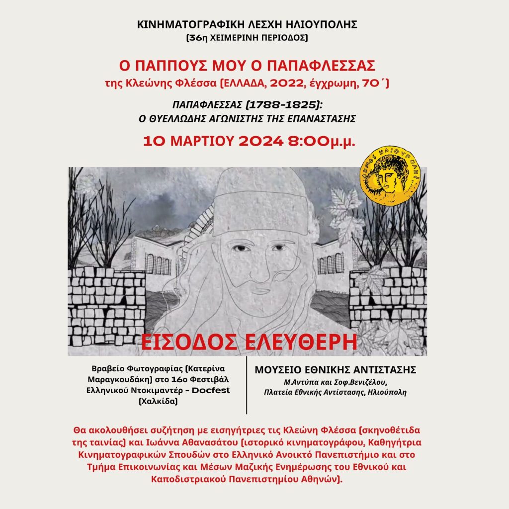 ΚεντρικήΚοινωνικά“Ο παππούς μου ο Παπαφλέσσας” από την κινηματογραφική λέσχη Ηλιούπολης by xristiana9 Μαρτίου 20249 Μαρτίου 20240390 Share00 9/3/2024 Πηγή: https://www.xtypos.gr