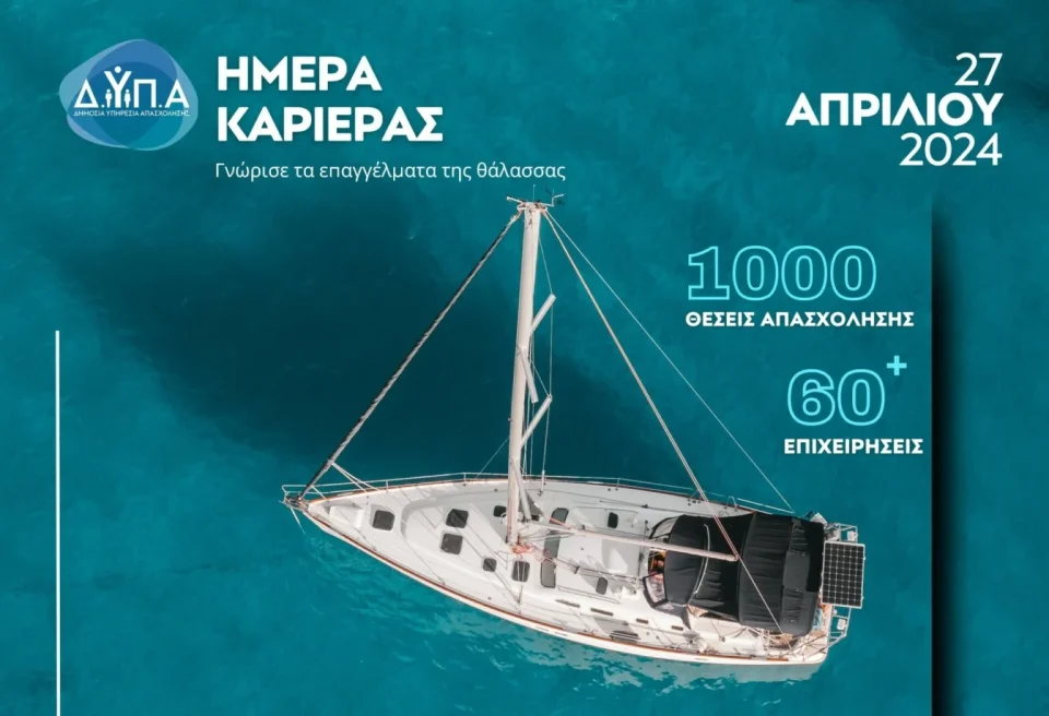«Ημέρα Καριέρας» για τη γαλάζια οικονομία διοργανώνει η Δημόσια Υπηρεσία Απασχόλησης (ΔΥΠΑ), το Σάββατο 27 Απριλίου, στην πέτρινη αποθήκη του ΟΛΠ στον Πειραιά (είσοδος από Πύλη Ε2) από τις 10:00 έως τις 18:00.