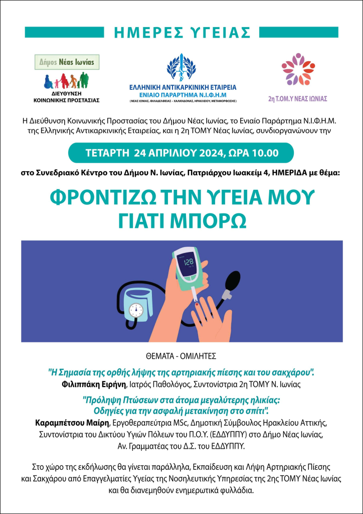 ΚεντρικήΚοινωνικάΗμερίδα με θέμα “Φροντίζω την υγεία μου γιατί μπορώ” by xristiana19 Απριλίου 202419 Απριλίου 20240361 Share00 19/4/2024 Πηγήhttps://www.xtypos.gr