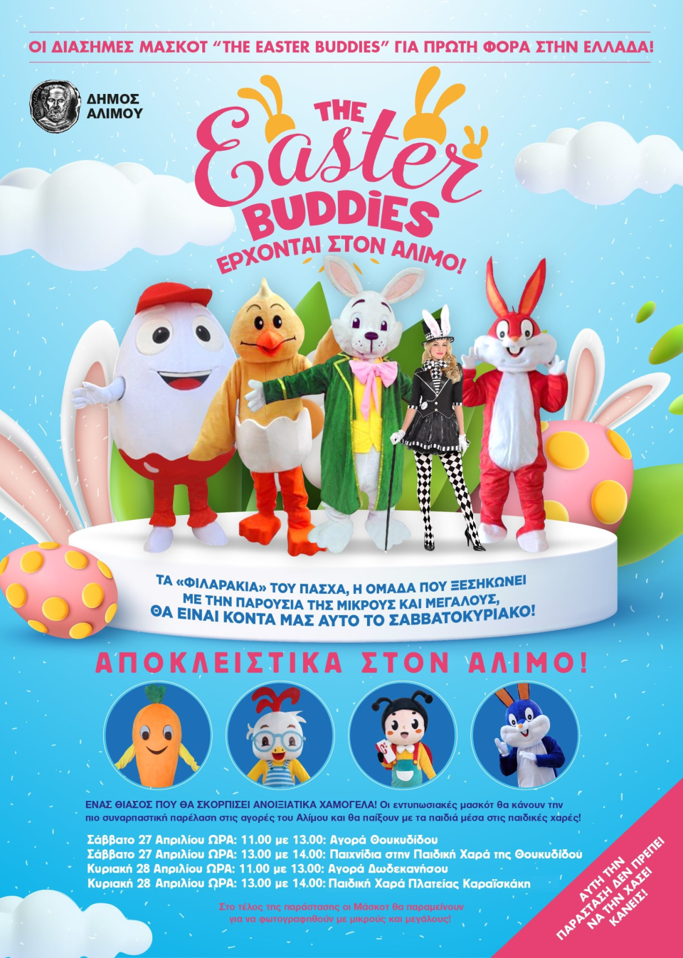 Οι διάσημες μασκότ «The Easter Buddies», τα ξακουστά και αγαπημένα «Πασχαλινά Φιλαράκια», έρχονται στον Άλιμο!