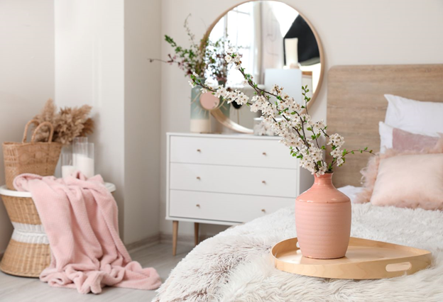 Το δωμάτιο είναι ίσως ο πιο προσωπικός χώρος του σπιτιού μας. Γι’ αυτό το λόγο πρέπει να νιώθουμε άνεση, ηρεμία και χαλάρωση. Επενδύοντας σε ένα ποιοτικό σετ σεντόνια και ανοιξιάτικες κουβέρτες θα δώσουμε την αίσθηση της φρεσκάδας και φυσικά οι αμέτρητες επιλογές σε σχέδια και χρώματα θα ανανεώσουν τον χώρο μας. Ακόμα ένας πολύ ξεχωριστός τρόπος να δώσουμε ανανέωση στον χώρο του δωματίου μας είναι να επιλέξουμε φωτιστικά με χαμηλό φωτισμό, έτσι ώστε να δημιουργείται μια χαλαρωτική ατμόσφαιρα.