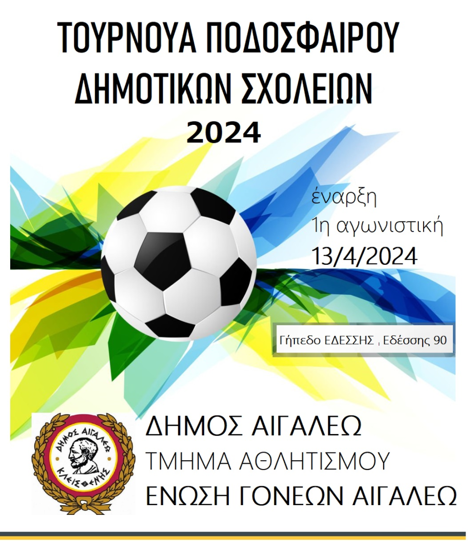 Η δράση αφορά σε Τουρνουά Ποδοσφαίρου των Δημοτικών Σχολείων Αιγάλεω, με τη συμμετοχή των μαθητών της Δ’, Ε’ και ΣΤ’ τάξης.