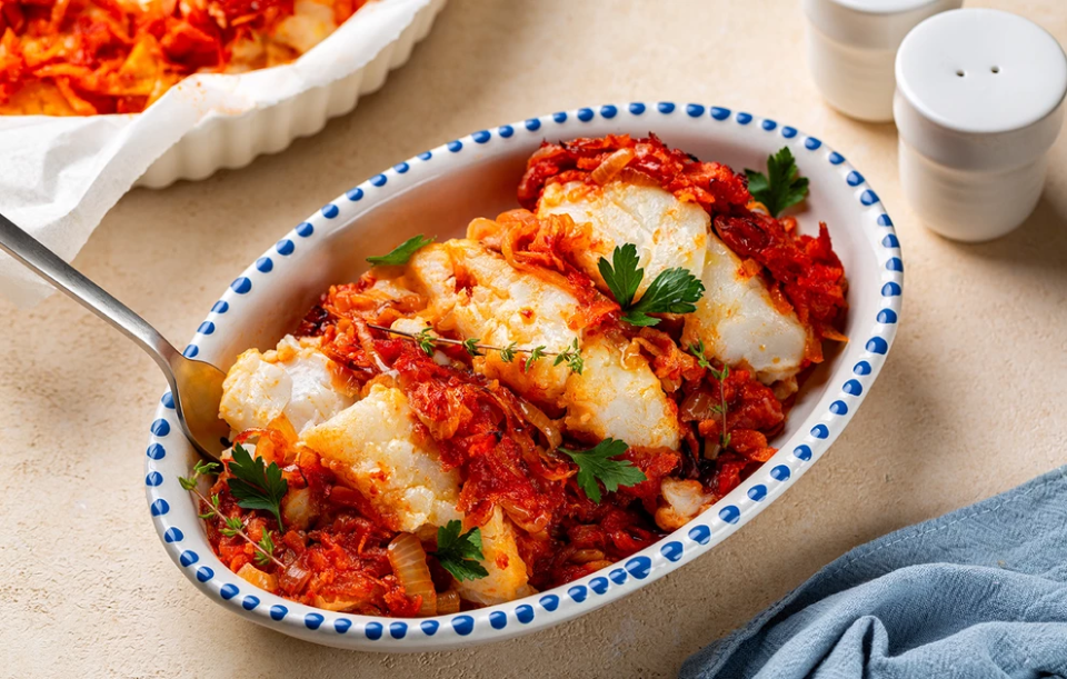 - Όταν η σάλτσα είναι έτοιμη, τοποθετήστε το ψάρι μέσα στη σάλτσα και πάρτε λίγη από τη σάλτσα για να καλύψετε καλά την κορυφή του ψαριού.