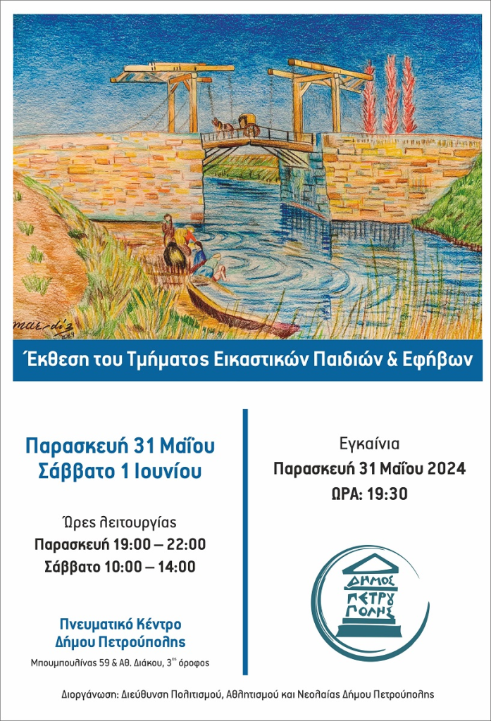 ΚεντρικήΚοινωνικάΈκθεση Τμήματος Εικαστικών για Παιδιά και Εφήβους Δήμου Πετρούπολης by xristiana29 Μαΐου 202429 Μαΐου 20240429 Share00 29/5/2024 Πηγή: https://www.xtypos.gr