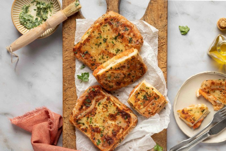 Κλείνουμε τα πιτάκια φέρνοντας πρώτα το δεξί μέρος προς το κέντρο και μετά το αριστερό. Κάνουε το ίδιο με το κάτω και το πάνω μέρος, σφραγίζοντας καλά τις άκρες. Αλείφουμε την επιφάνεια με το βούτυρο μαϊντανού και ψήνουμε σε ζεστό αντικολλητικό τηγάνι μέχρι να ροδίσουν και από τις δύο πλευρές. Προσέχουμε να ψήσουμε καλά την πλευρά στην οποία έχουμε κλείσει το πιτάκι, γιατί θα έχει μια πιο παχιά στρώση ζύμης. Αφήνουμε να κρυώσει ελαφρώς και απολαμβάνουμε.