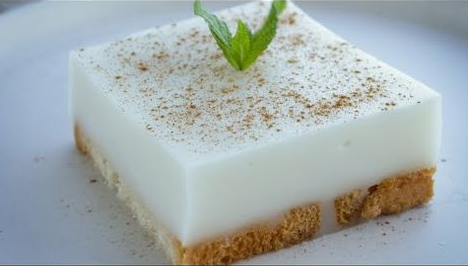 - Αδειάζετε το μείγμα στο ταψί ή τσέρκι, πάνω στις φρυγανιές, ισιώνετε την επιφάνειά του με μια σπάτουλα και βάζετε το γλυκό σας στο ψυγείο για τουλάχιστον 2 ώρες στο ψυγείο να κρυώσει και σταθεροποιηθεί καλά. Το πασπαλίζετε προαιρετικά με λίγη κανέλα τριμμένη ή/και ινδοκάρυδο και σερβίρετε.