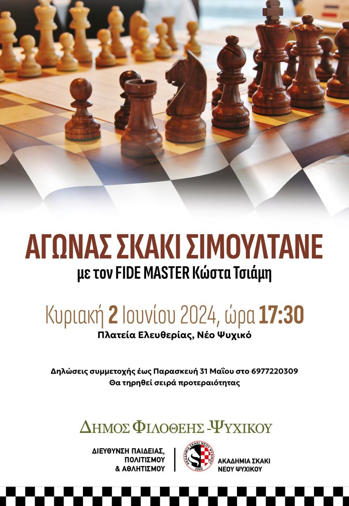 ΚεντρικήΚοινωνικά14ος Αγώνας Σκάκι Σιμουλτανέ by xristiana31 Μαΐου 20241 Ιουνίου 20240271 Share00 31/5/2024