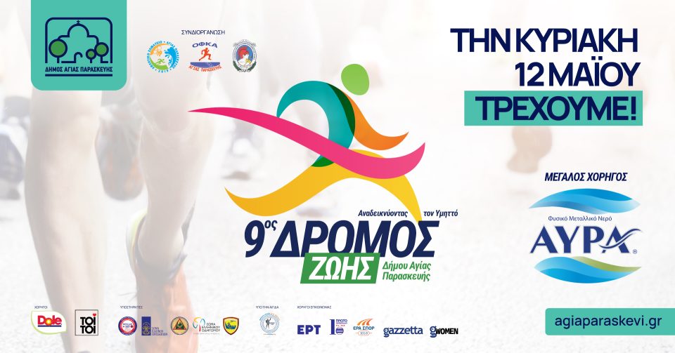 Για 9η χρονιά ο Δήμος Αγίας Παρασκευής συνδιοργανώνει με το Αθλητικό Σωματείο Αγίας Παρασκευής (Α.Σ.Α.Π.), τον Όμιλο Φίλων Κλασσικού Αθλητισμού (Ο.Φ.Κ.Α) Αγίας Παρασκευής καθώς και με την συνδρομή του Συνδέσμου Εφέδρων Αξιωματικών Ανατολικής Αττικής, τον «9ο Δρόμο Ζωής Δήμου Αγίας Παρασκευής -ΑΝΑΔΕΙΚΝΥΟΝΤΑΣ ΤΟΝ ΥΜΗΤΤΟ 2024», έναν Αγώνα Δρόμου για όλες τις ηλικίες.Ο αγώνας θα διεξαχθεί την Κυριακή 12 Μαΐου με σημείο εκκίνησης, καθώς και τερματισμού την κεντρική πλατεία Αγίας Παρασκευής.Στόχος της διοργάνωσης είναι η προώθηση του δρομικού κινήματος και η ενίσχυση της σωματικής αλλά και ψυχικής υγείας, καθώς δίνεται η δυνατότητα συμμετοχής σε δρομείς αλλά και σε άτομα όλων των ηλικιών να συμμετάσχουν σ’ έναν μεικτό αγώνα δρόμου που συνδέει τον σύγχρονο αστικό ιστό με το φυσικό περιβάλλον, αναδεικνύοντας την οικολογική και αθλητική αξία του Υμηττού.Η διοργάνωση, εκτός από την αθλητική της διάσταση, έχει και χαρακτήρα αλληλεγγύης, καθώς θα δίνεται η δυνατότητα σε όσους συμμετέχοντες το επιθυμούν, να ενισχύσουν το Κοινωνικό Παντοπωλείο & Μαγειρείο του Δήμου Αγίας Παρασκευής, προσφέροντας τρόφιμα όπως ελαιόλαδο συσκευασίας 1L, ζάχαρη, ζυμαρικά, όσπρια, χυμό ντομάτας.1η ΔΙΑΔΡΟΜΗ (Απόσταση 14 χλμ. Μεικτή δρόμος- βουνό)2η ΔΙΑΔΡΟΜΗ (Απόσταση 5 χλμ. Μαζικός ενηλίκων άνω των 18 ετών & Λυκείων Σχολείων)3η ΔΙΑΔΡΟΜΗ (Απόσταση 1 χλμ.- Γυμνασίων Σχολείων)4η ΔΙΑΔΡΟΜΗ (Απόσταση 600 μ.- Παιδικό Δημοτικών Σχολείων)Ο αγώνας θα διεξαχθεί ΥΠΟ ΤΗΝ ΑΙΓΙΔΑ της Ε.Ο.Σ.Λ.Μ.Α.-Υ (Ελληνική Ομοσπονδία Συλλόγων Λαϊκού Μαζικού Αθλητισμού- Υπεραποστάσεων) και με την υποστήριξη του Β’ Τμήματος Τροχαίας Βορειοανατολικής Αττικής, του Αστυνομικού Τμήματος Αγίας Παρασκευής, του 1ου & 3ου Συστήματος Ελλήνων Προσκόπων Αγίας Παρασκευής, του Σωματείου Εθελοντών Πολιτικής Προστασίας Βορειοανατολικού Τομέα Υμηττού (ΣΕΠΠΒΑΤΥ), του 2ου Σύστηματος Προσκόπων και του Τμήματος του Σώματος Ελληνικού Οδηγισμού Αγίας Παρασκευής.
