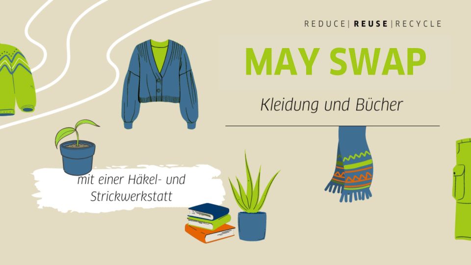 Προσκαλούμε μικρούς και μεγάλους στο May Swap – μια ημέρα αφιερωμένη στην δωρεάν ανταλλαγή ρούχων. Με αυτό τον τρόπο δίνουμε νέα ζωή στα παλιά ρούχα μας, κάνουμε κάτι καλό για το περιβάλλον και εξοικονομούμε χρήματα. Και επειδή η ανταλλαγή είναι μια διασκεδαστική διαδικασία, θα σας προσφέρουμε την δυνατότητα και ανταλλαγής βιβλίων. Η ημέρα Swap θα πλαισιωθεί επίσης με ένα εργαστήριο με βασικές τεχνικές πλεξίματος για βελονάκι.