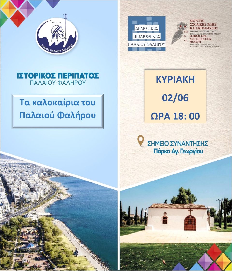 Ο Δήμαρχος Παλαιού Φαλήρου Γιάννης Φωστηρόπουλος και η Αντιδήμαρχος Δημοτικών Παιδικών Σταθμών Π. Φαλήρου & Δημοτικών Βιβλιοθηκών Μαίρη Τρύφων, σε συνεργασία με το Μουσείο Σχολικής Ζωής και Εκπαίδευσης, σας προσκαλούν στον ιστορικό περίπατο «Τα καλοκαίρια του Παλαιού Φαλήρου»
