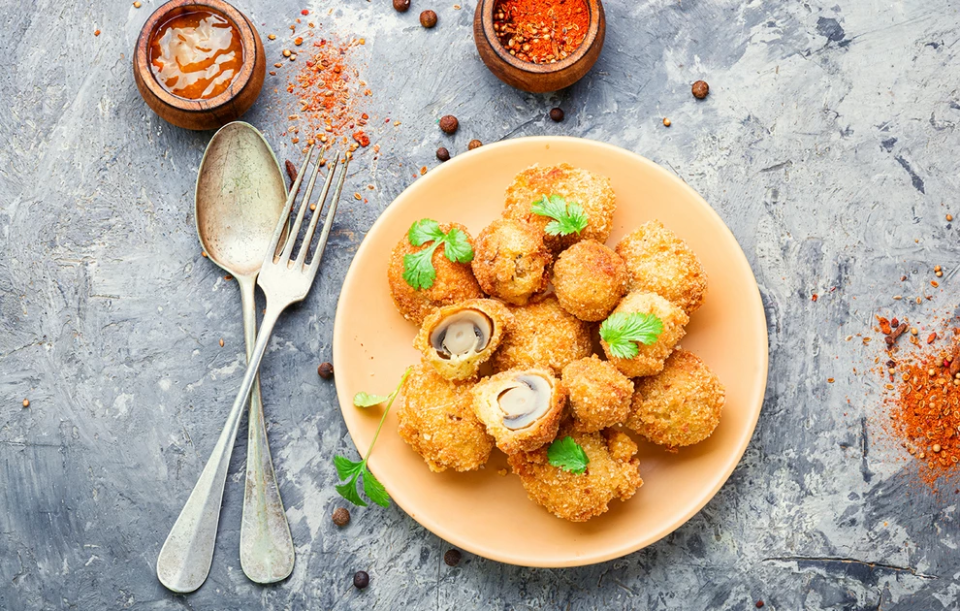 - Τοποθετήστε τα παναρισμένα μανιτάρια στο καλάθι του air fryer. Βεβαιωθείτε ότι τα μανιτάρια έχουν τουλάχιστον λίγο χώρο μεταξύ τους για ομοιόμορφο ψήσιμο.