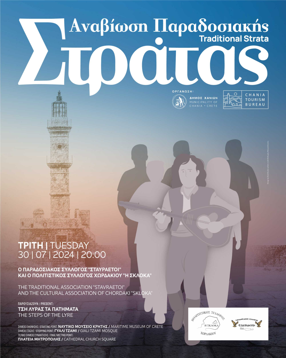 Το μουσικοχορευτικό δρώμενο της Παραδοσιακής Στράτας του Δήμου Χανίων αναβιώνει για 3η συνεχόμενη χρονιά και γεμίζει τα καλοκαίρια μας αλλά και τα σοκάκια της Παλιάς Πόλης και του Ενετικού Λιμένα Χανίων, με την παράδοση και την πολιτιστική κληρονομιά του τόπου μας.