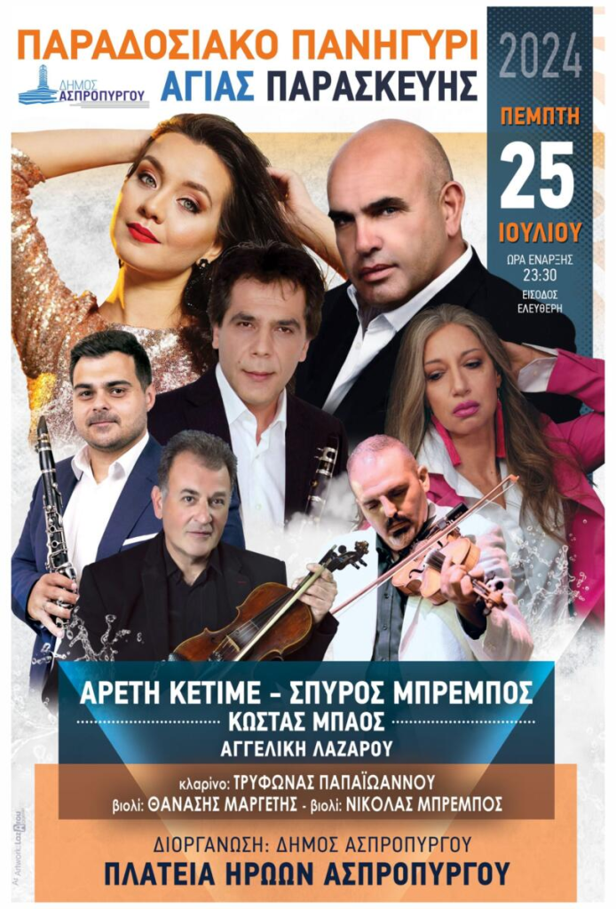 ΚεντρικήΚοινωνικάΕκδήλωση εορτασμού Αγ. Παρασκευής στον Ασπρόπυργο by xristiana21 Ιουλίου 202424 Ιουλίου 20240374 Share00 21/7/2024 Πηγή: https://www.xtypos.gr