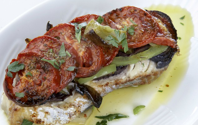- Πασπαλίζετε με το σκόρδο και το μαϊντανό. Περιχύνετε με την υπόλοιπη σάλτσα ντομάτας και ψήνετε το φαγητό για άλλα 20′-30′, μέχρι να ψηθούν οι ντομάτες και το φαγητό να μείνει με τη σάλτσα του.