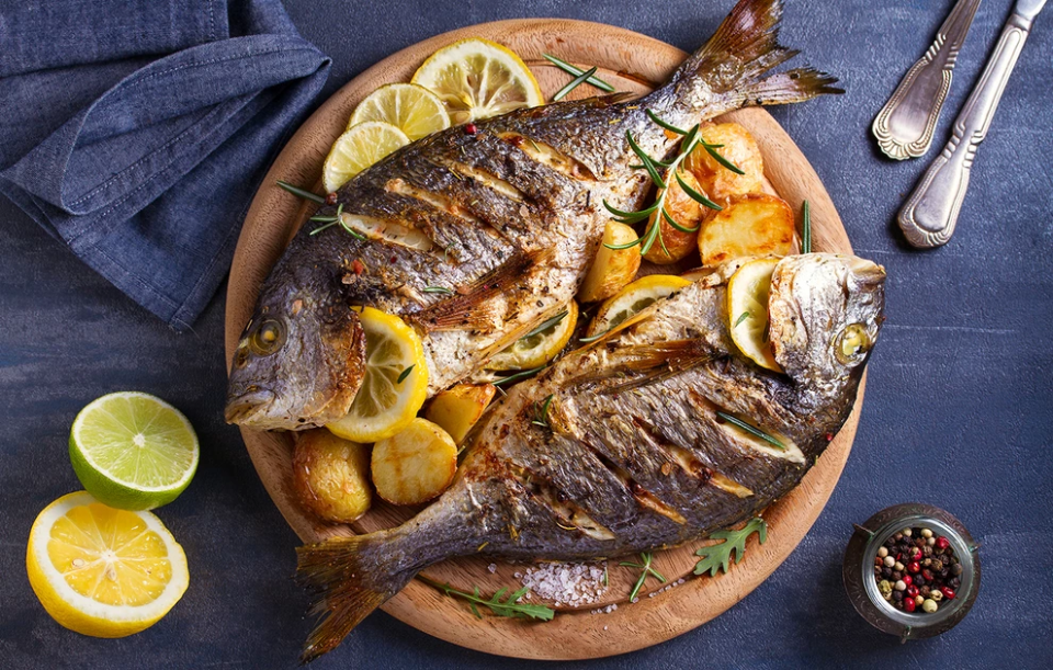Ψάρι στα κάρβουνα με λεμόνι και δενδρολίβανο