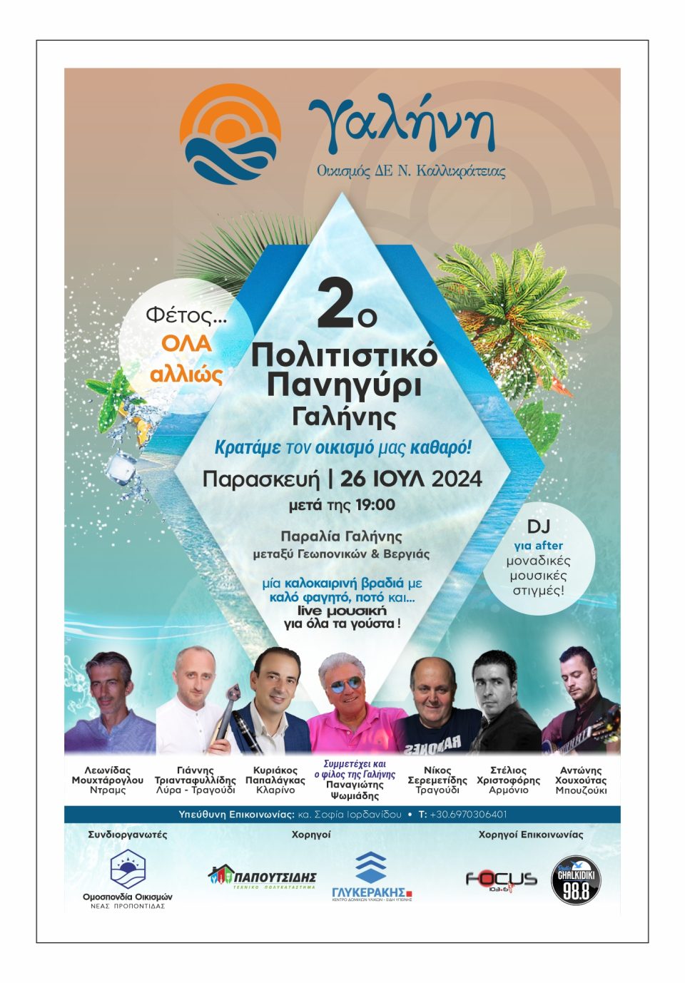 ΚεντρικήΚοινωνικά2ο Πολιτιστικό Πανηγύρι του οικισμού Γαλήνης Νέας Καλλικράτειας. by xristiana24 Ιουλίου 202424 Ιουλίου 20240240 Share00 24/7/2024