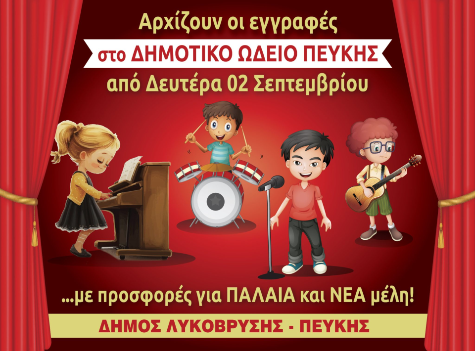 Το Δημοτικό Ωδείο Πεύκης ετοιμάζεται για το νέο σχολικό έτος και από τη Δευτέρα 2 Σεπτεμβρίου 2024 αρχίζει τις εγγραφές.