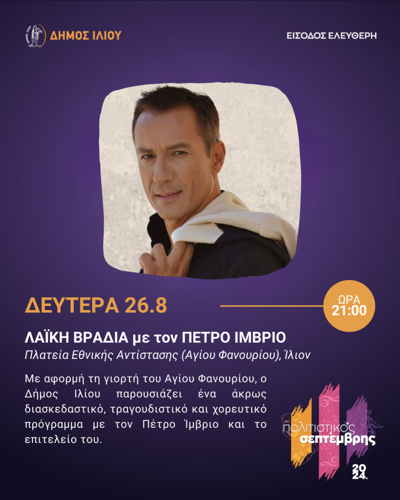 ΚεντρικήΚοινωνικάΛΑΙΚΗ ΒΡΑΔΙΑ με τον ΠΕΤΡΟ ΙΜΒΡΙΟ by xristiana18 Αυγούστου 202418 Αυγούστου 20240366 Share00 18/8/2024