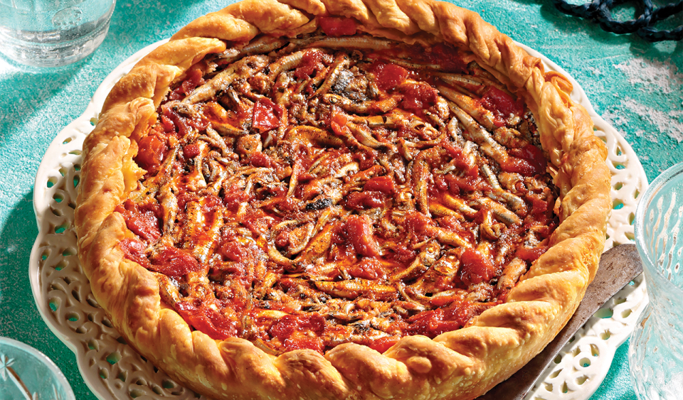 Αραδιάζουμε από πάνω τις μαρίδες. Τις πασπαλίζουμε με πιπέρι και τις περιχύνουμε με 1 κούπα ελαιόλαδο.