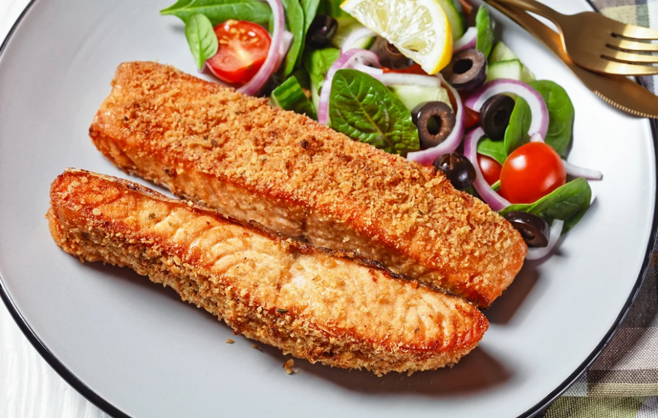- Μεταφέρετε σε ένα ταψί με λαδόκολλα και ψήστε μέχρι να ροδίσουν και να ψηθούν τα φιλέτα σολομού, 16- 18 λεπτά.