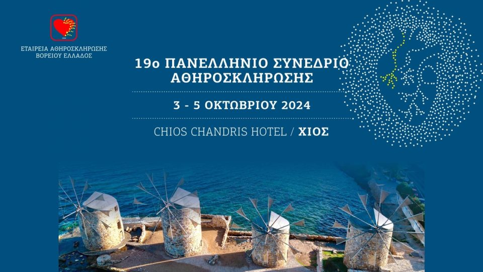Η Εταιρεία Αθηροσκλήρωσης Βορείου Ελλάδος πραγματοποιεί το 19ο Πανελλήνιο Συνέδριο Αθηροσκλήρωσης στις 3-5 Οκτωβρίου 2024 στo ξενοδοχείο Chios Chandris, στη Χίο.