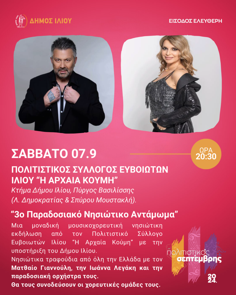 ΚεντρικήΚοινωνικά«3ο Παραδοσιακό Νησιωτικό Αντάμωμα» by xristiana26 Αυγούστου 202411 Σεπτεμβρίου 20240322 Share00 26/8/2024
