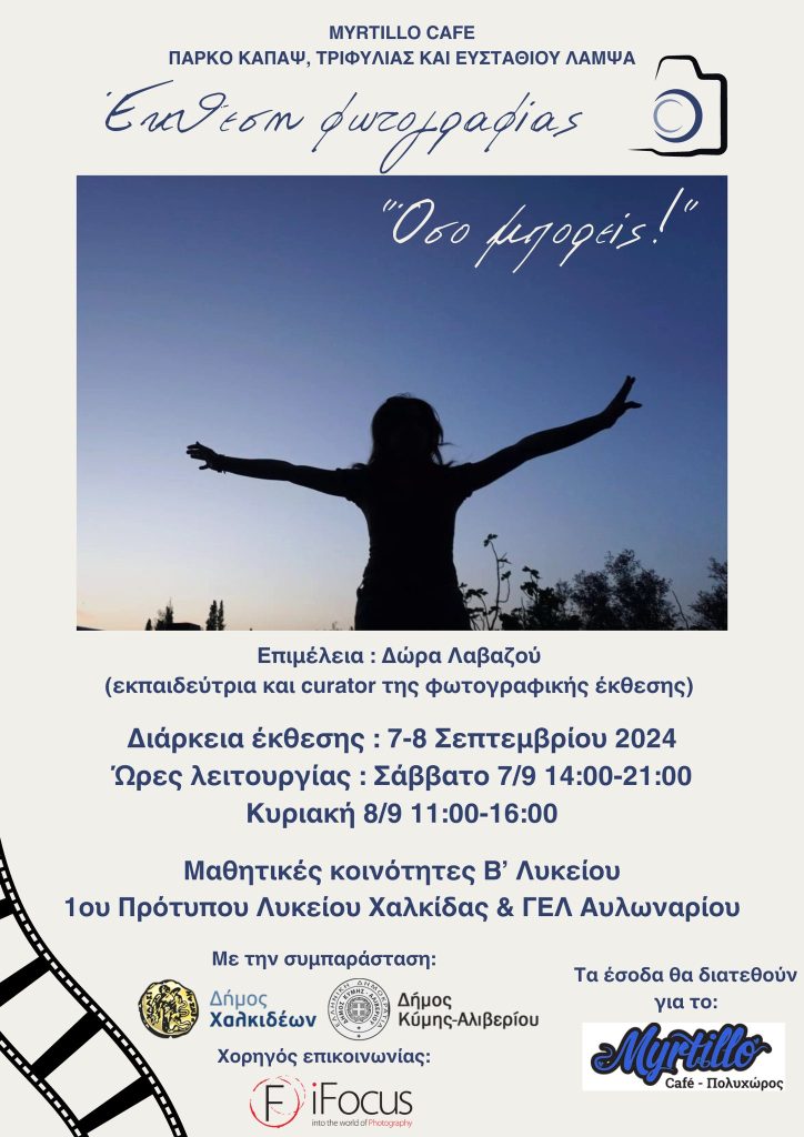 ΚεντρικήΚοινωνικάΈκθεση φωτογραφίας από τις μαθητικές κοινότητες 1ο Πρότυπο Λύκειο Χαλκίδας και ΓΕΛ Αυλωναρίου by xristiana5 Σεπτεμβρίου 202419 Σεπτεμβρίου 20240322 Share00 5/9/2024