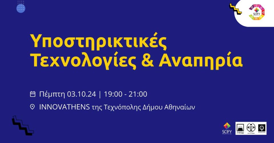 H Science for You – SciFY σας προσκαλεί στην εκδήλωση SciFY Academy “Υποστηρικτικές Τεχνολογίες και Αναπηρία”. Θα πραγματοποιηθεί την Πέμπτη 3 Οκτωβρίου 2024, στις 19:00, στο INNOVATHENS της Τεχνόπολης Δήμου Αθηναίων (Πειραιώς 100, Γκάζι). Καθηγητές, ερευνητές και έμπειροι επαγγελματίες στον χώρο της εργοθεραπείας και της νευροαποκατάστασης θα μας μιλήσουν με απλά λόγια για τις Υποστηρικτικές Τεχνολογίες και τον ρόλο τους στην αναπηρία σήμερα!