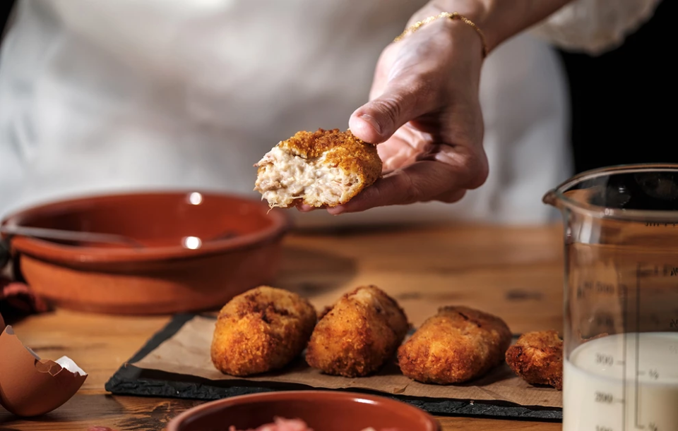 - Προθερμάνετε το air fryer στους 200 βαθμούς και μαγειρέψτε τις κροκέτες σε 2 δόσεις, για 8-10 λεπτά ή μέχρι να ροδίσουν.