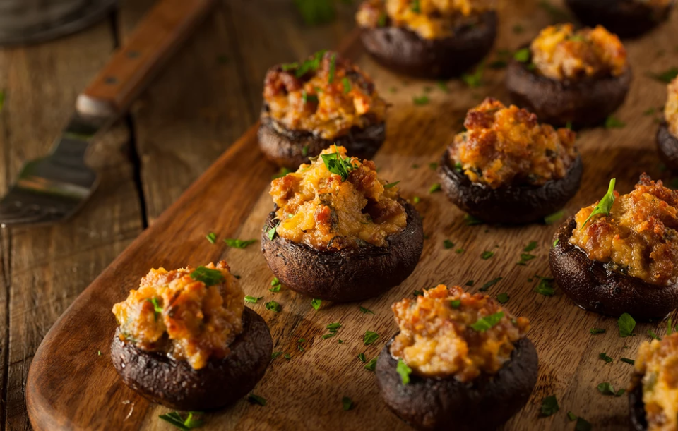 - Γεμίστε κάθε μανιτάρι με το μείγμα.