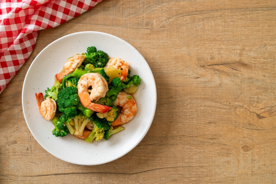 Δυναμώστε τη φωτιά σε μέτρια προς υψηλή και προσθέστε την υπόλοιπη 1 κουταλιά της σούπας λάδι στην κατσαρόλα. Προσθέστε το υπόλοιπο σκόρδο και μαγειρέψτε μέχρι να αρχίσει να ροδίζει, για περίπου 1 λεπτό. Προσθέστε τις γαρίδες και το υπόλοιπο 1/4 κουταλάκι του γλυκού αλάτι και πιπέρι. Μαγειρέψτε, ανακατεύοντας, μέχρι να ψηθούν οι γαρίδες, για 3 έως 5 λεπτά. Επιστρέψτε το μείγμα του μπρόκολου στην κατσαρόλα μαζί με το χυμό λεμονιού και ανακατέψτε μέχρι να ενωθούν όλα τα υλικά.
