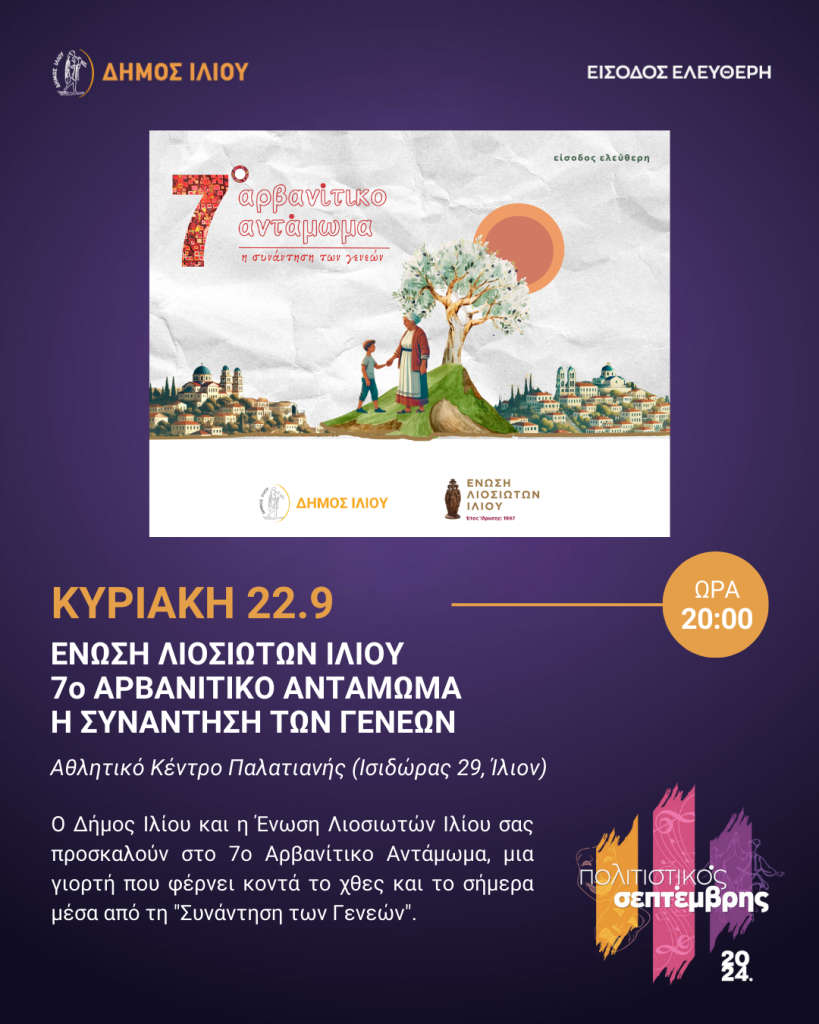 ΚεντρικήΚοινωνικά7ο Αρβανίτικο Αντάμωμα – Η Συνάντηση των γενεών by xristiana20 Σεπτεμβρίου 202425 Σεπτεμβρίου 20240242 Share00 20/9/2024