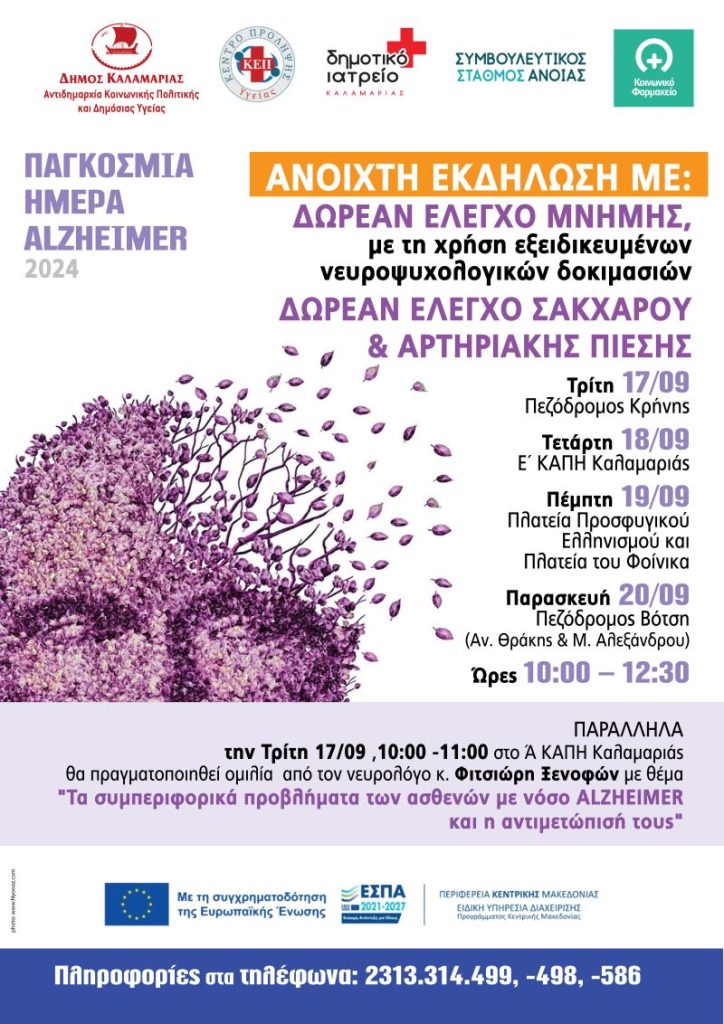 ΚεντρικήΚοινωνικάH Παγκόσμια Ημέρα Alzheimer στον Δήμο Καλαμαριάς – Δράσεις ενημέρωσης και υποστήριξης by xristiana15 Σεπτεμβρίου 202420 Σεπτεμβρίου 20240287 Share00 15/9/2024