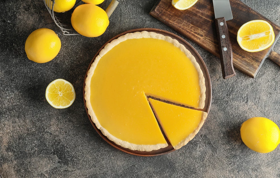 - Αδειάστε το κρύο μείγμα λεμονιού στην ψημένη βάση της τάρτας και ψήστε για 35- 40 λεπτά μέχρι να σταθεροποιηθεί και να κουνιέται ελαφρά στο κέντρο.