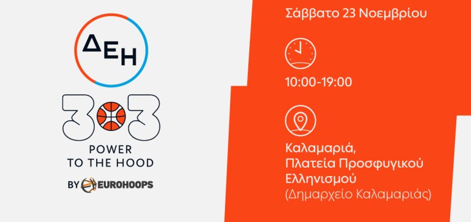 Στο επίκεντρο του ΔΕΗ 3×3 POWER TO THE HOOD by Eurohoops βρίσκεται το τουρνουά 3×3, για τρεις μικτές ηλικιακές κατηγορίες (10-13, 14-17, 18+), με δωρεάν συμμετοχή.