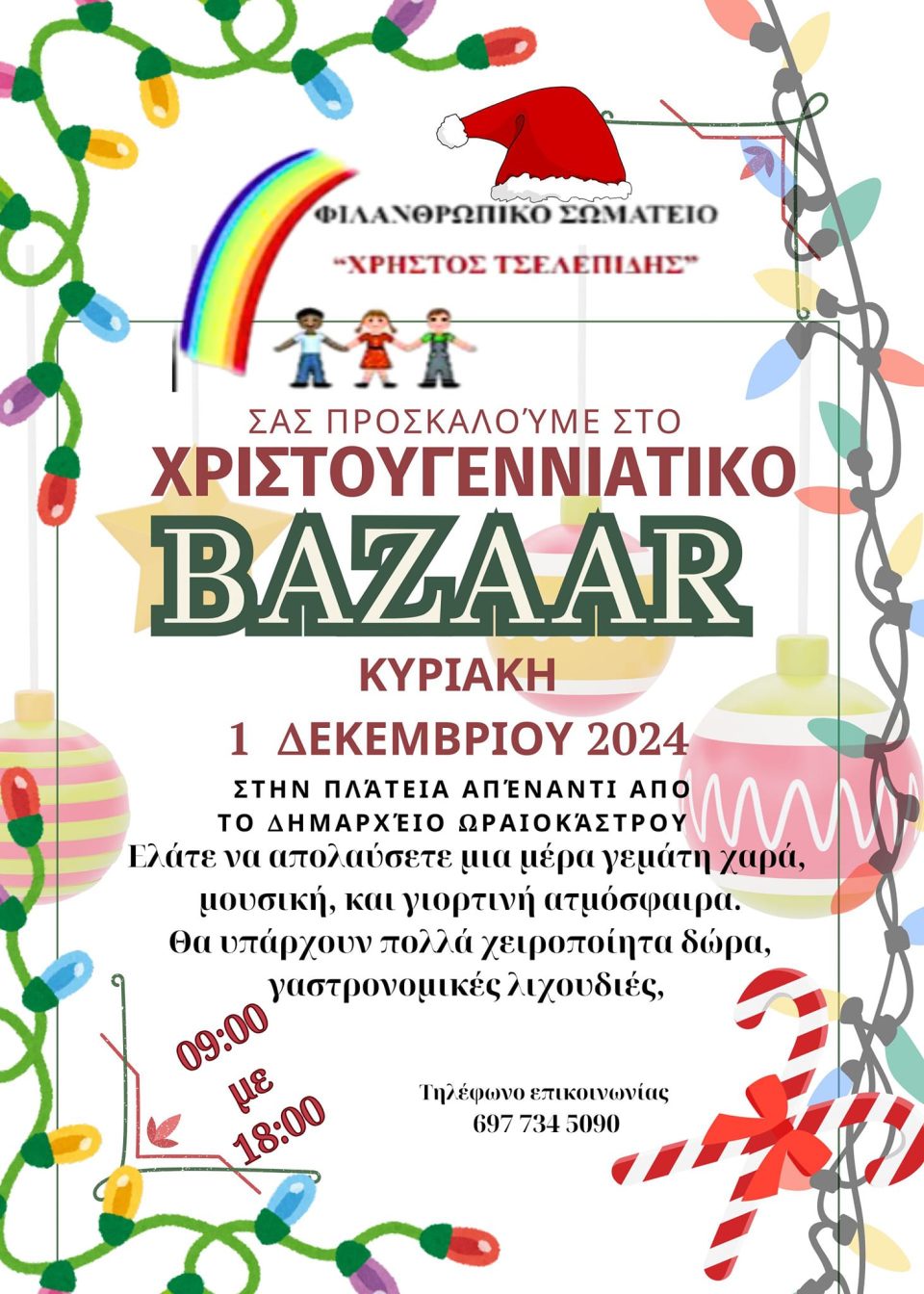 Χριστουγεννιάτικο bazaar με φιλανθρωπικό σκοπό διοργανώνεται την 1η Δεκεμβρίου στην πλατεία απέναντι από το δημαρχείο Ωραιοκάστρου.