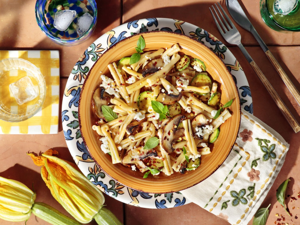 Στριφτάρια με κολοκυθάκια, φέτα και ψητά μανιτάρια