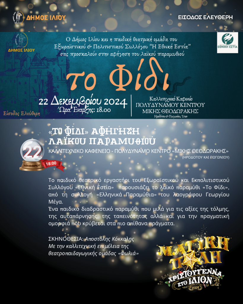 ΚεντρικήΚοινωνικάΤο Φίδι – Αφήγηση Λαϊκού Παραμυθιού by xristiana20 Δεκεμβρίου 202420 Δεκεμβρίου 20240248 Share00 20/12/2024