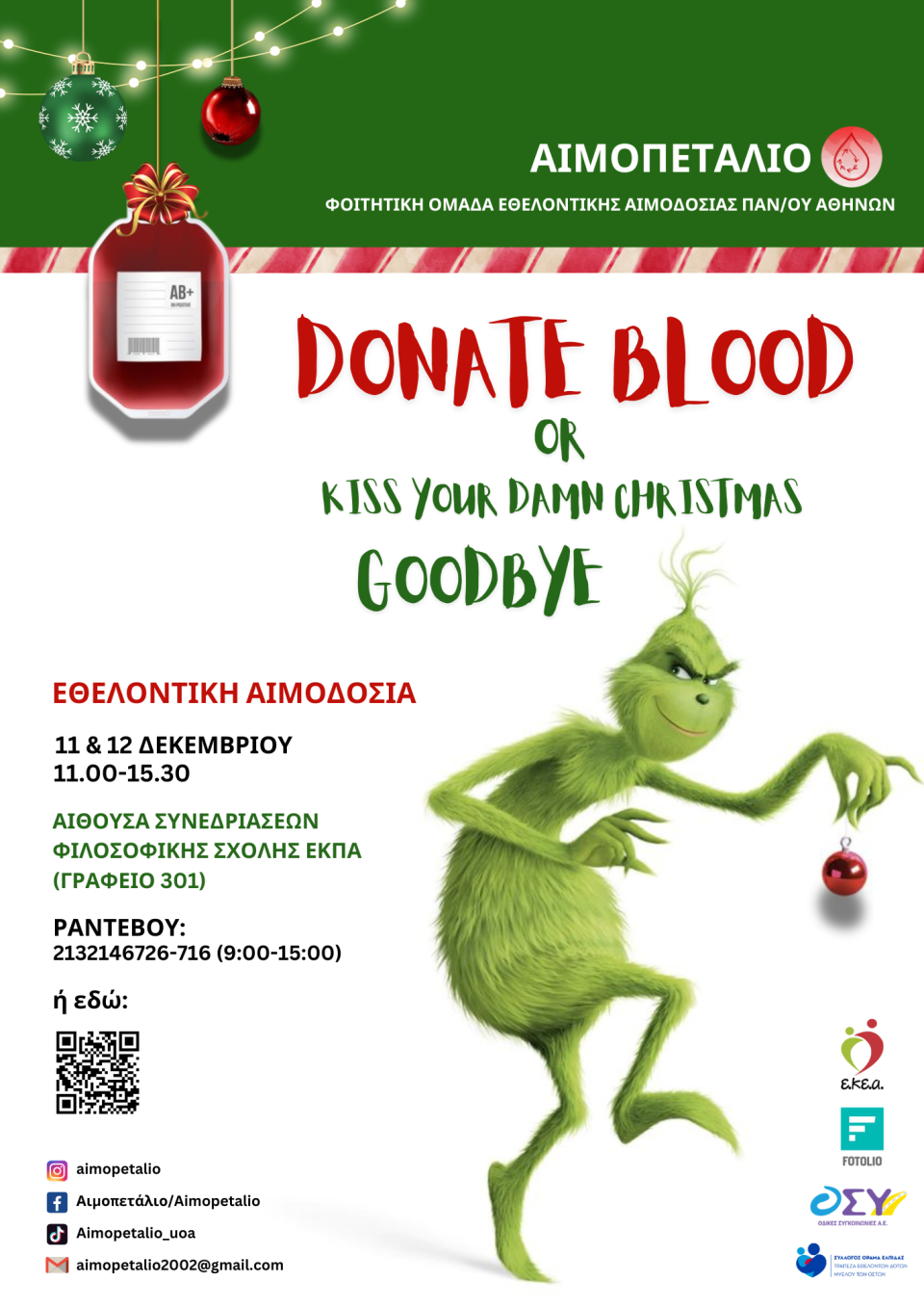 Πανεπιστημίου Αθηνών «Αιμοπετάλιο» σε προσκαλούν σε μια ακόμα εθελοντική