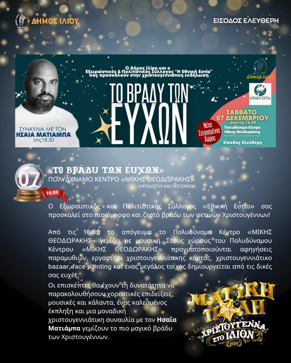 ΚεντρικήΚοινωνικάΤΟ ΒΡΑΔΥ ΤΩΝ ΕΥΧΩΝ by xristiana6 Δεκεμβρίου 20246 Δεκεμβρίου 20240259 Share00 6/12/2024