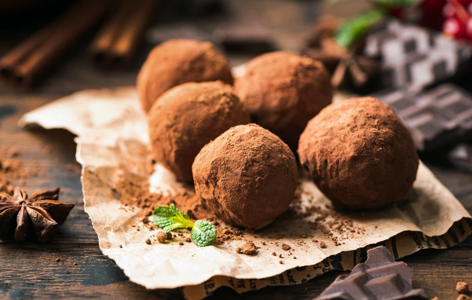 - Μόλις τυλίξετε όλες τις μπάλες, κυλήστε τις στο κακάο ή την επικάλυψη της επιλογής σας.
