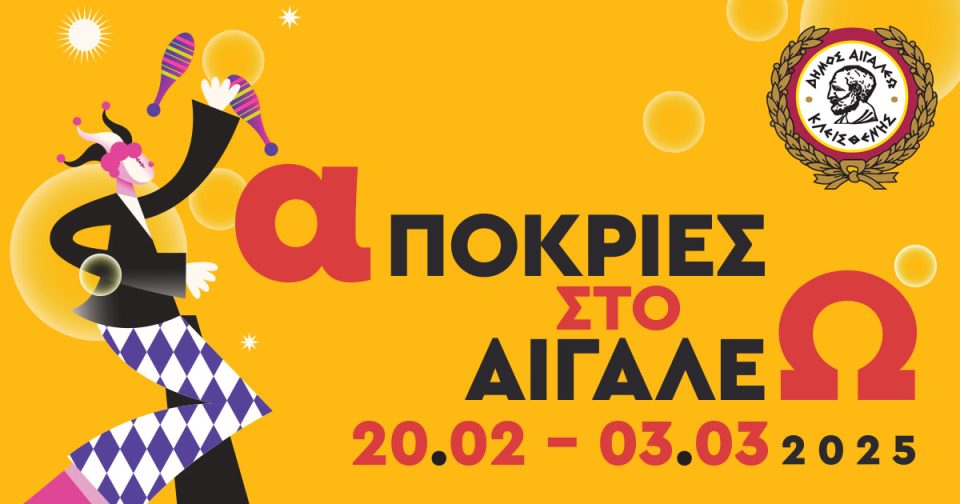 Ο Δήμος Αιγάλεω γιορτάζει την Αποκριά και την Καθαρά Δευτέρα 2025 με ένα πλούσιο πρόγραμμα εκδηλώσεων για μικρούς και μεγάλους, γεμάτο μουσική, χορό και διασκέδαση!