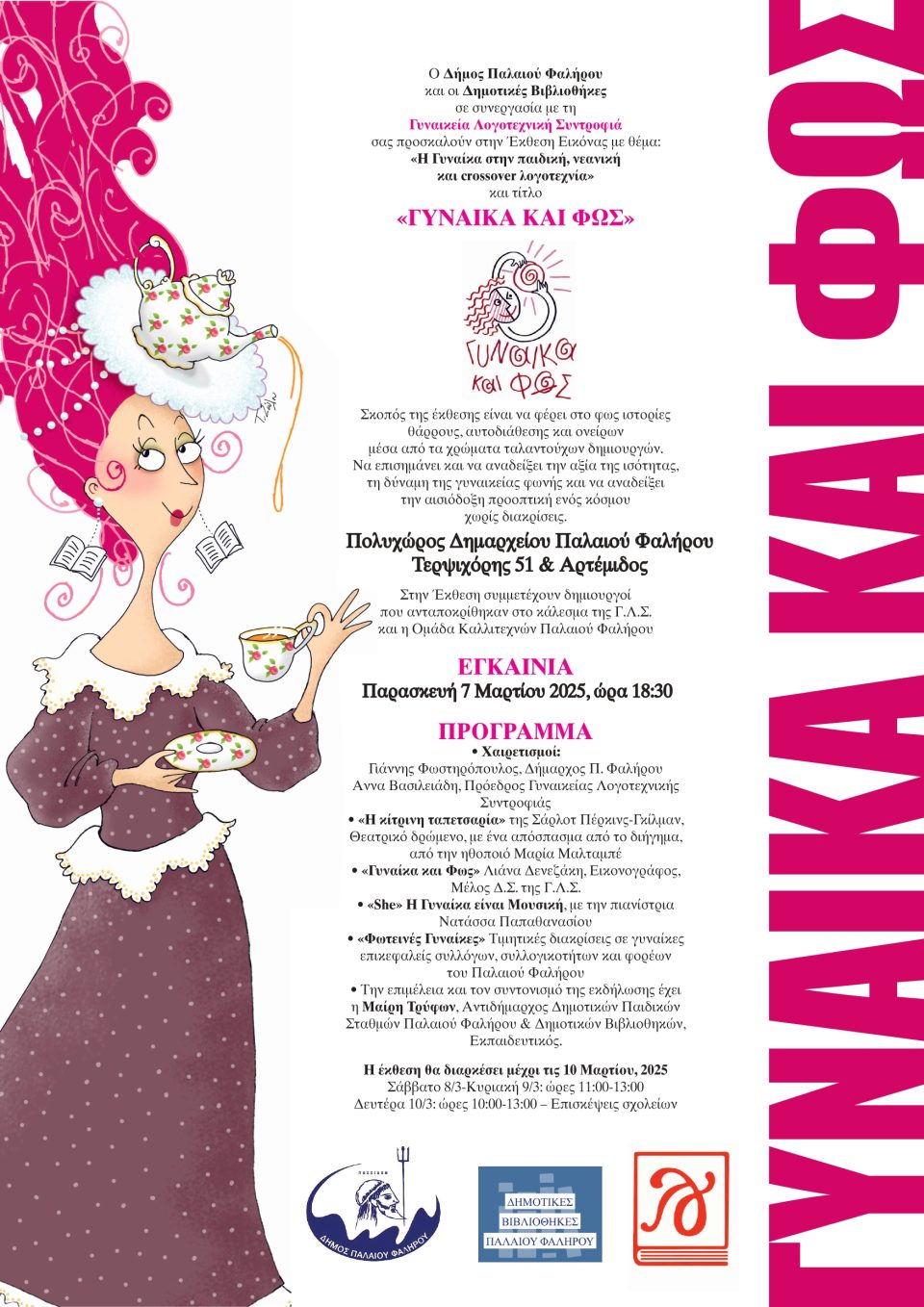 Ο Δήμαρχος Γιάννης Φωστηρόπουλος , η Αντιδήμαρχος Δημοτικών Παιδικών Σταθμών Παλαιού Φαλήρου & Δημοτικών Βιβλιοθηκών Μαίρη Τρύφων και η Πρόεδρος της Γυναικείας Λογοτεχνικής Συντροφιάς Άννα Βασιλειάδη, σας προσκαλούν σε ένα πολυδιάστατο αφιέρωμα στην Γυναίκα που είναι Φως, την Παρασκευή 7 Μαρτίου στις 18:30,στον Πολυχώρο του Δημαρχείου Π. Φαλήρου (Τερψιχόρης 51 & Αρτέμιδος).