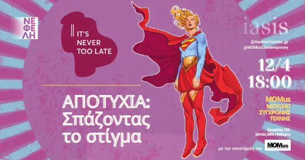 Η εκδήλωση θα εστιάσει στον τρόπο με τον οποίο η κοινωνία ορίζει την αποτυχία για κάθε ηλικιακή ομάδα, από την εφηβεία μέχρι την τρίτη ηλικία και υπό το πρίσμα της μητρότητας.