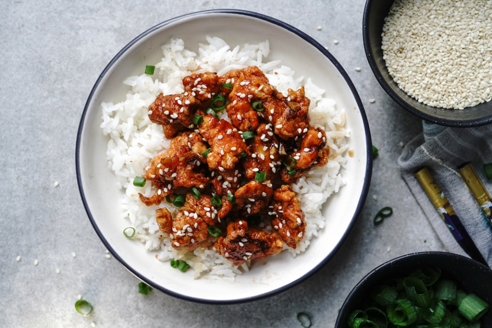 Σερβίρετε το κοτόπουλο μαζί με το μπρόκολο και το ρύζι, πασπαλισμένο με τους καβουρδισμένους σπόρους σουσαμιού.